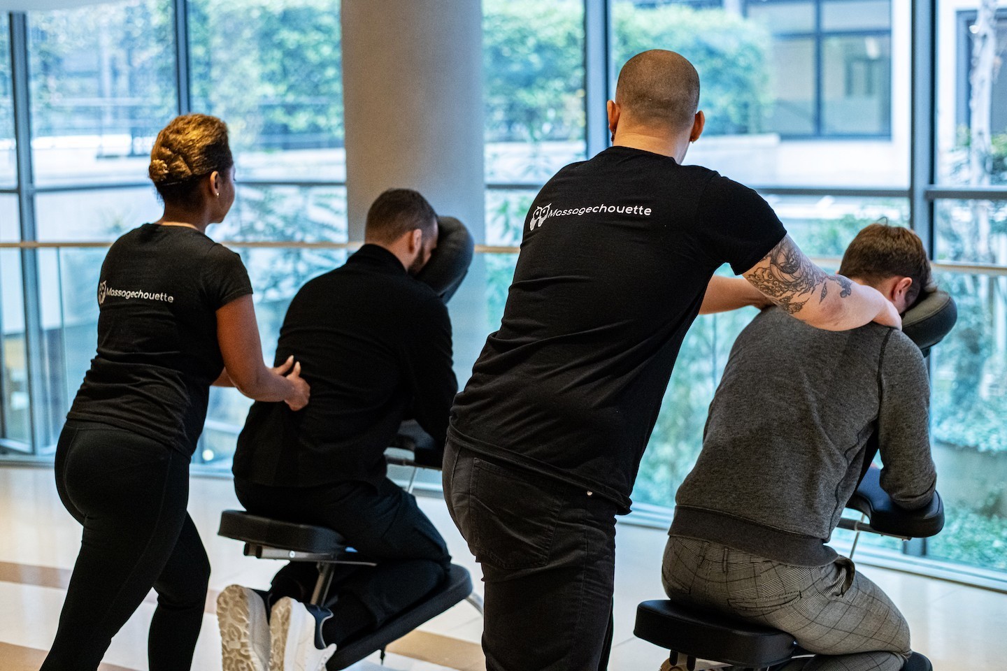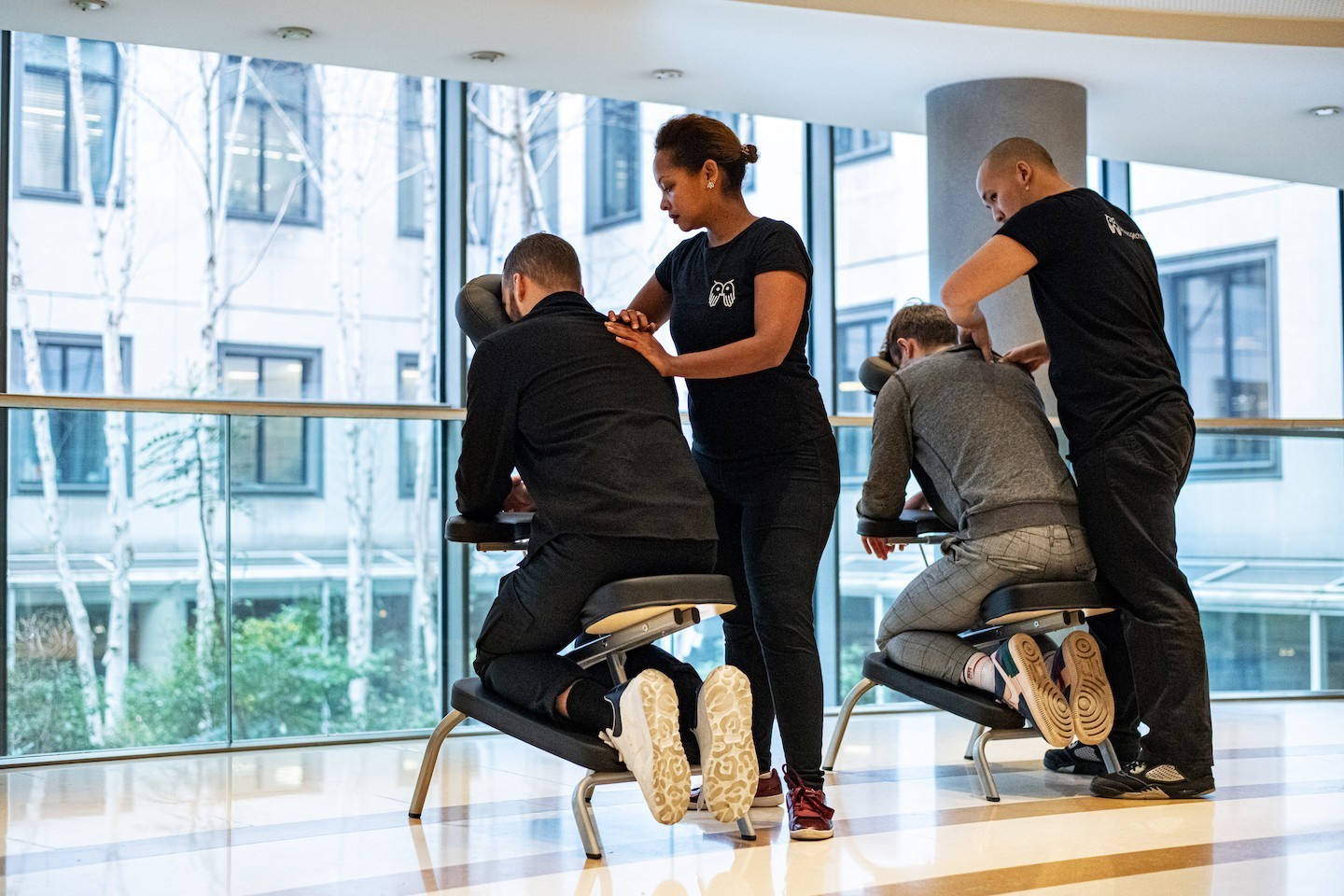 - Des massages sur chaise Amma pour soulager le stress et améliorer la concentration.